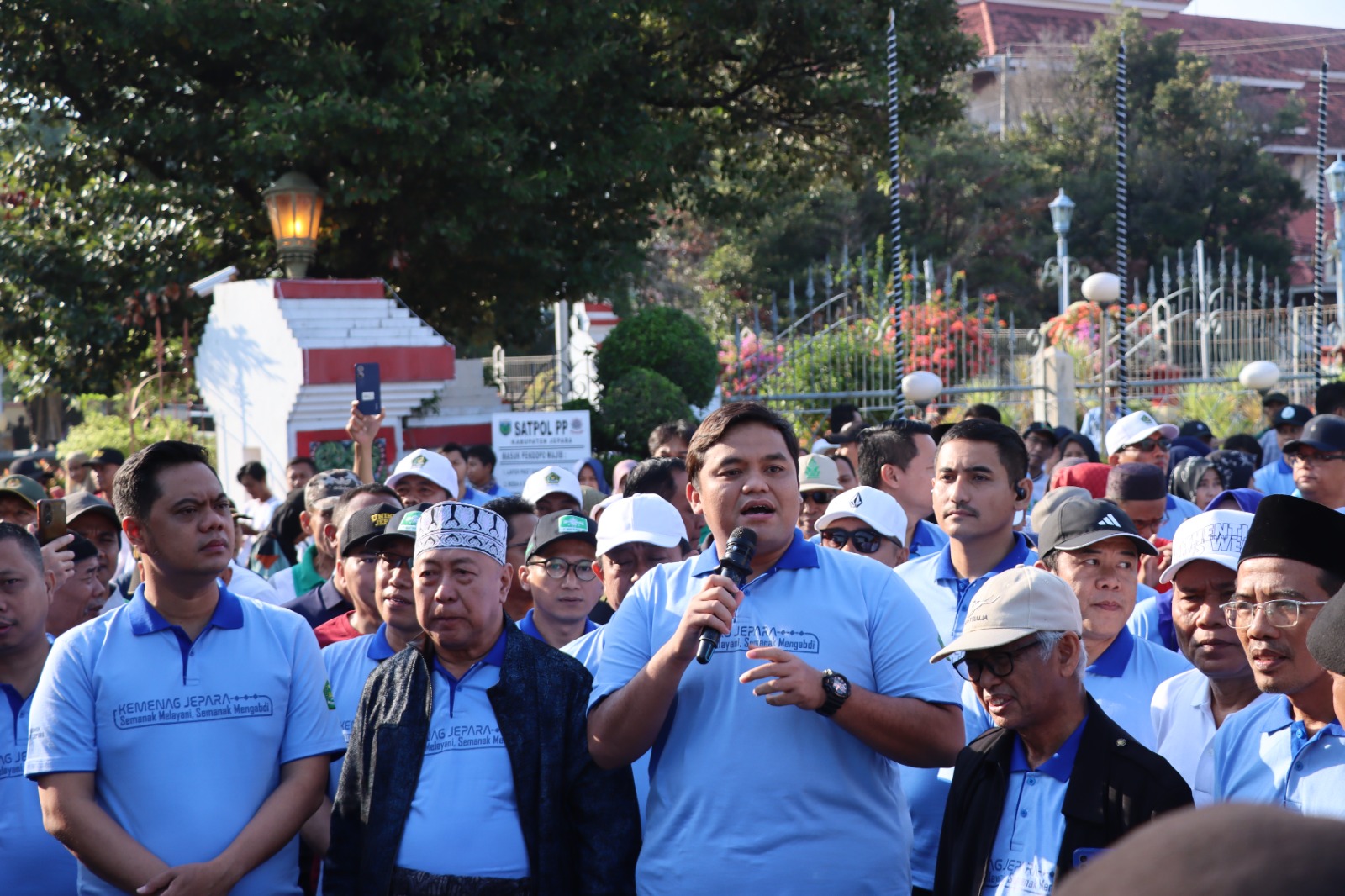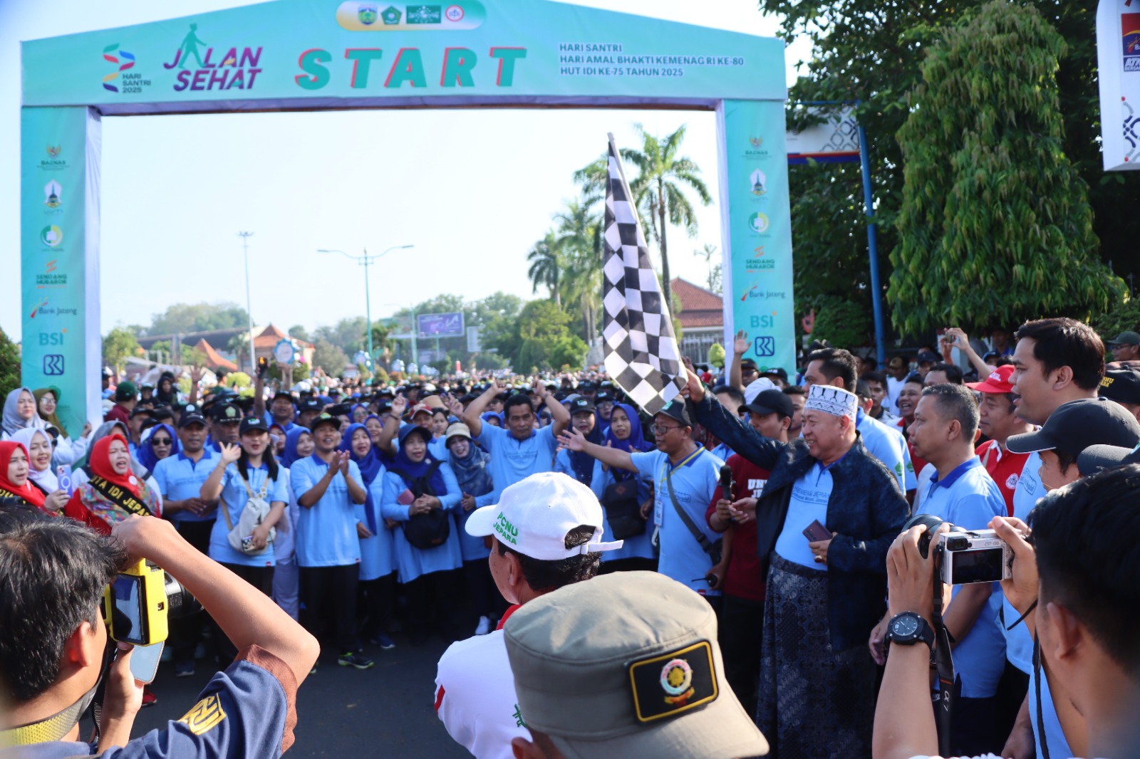 TNews, JEPARA — Suasana Alun-Alun I Jepara mendadak lautan manusia pada Sabtu (11/10/2025) pagi. Ribuan warga dari berbagai penjuru Jepara antusias mengikuti Jalan Sehat dalam rangka Hari Santri, Pencanangan Hari Amal Bhakti (HAB) ke-80 Kementerian Agama, dan Hari Jadi ke-75 Ikatan Dokter Indonesia (IDI).