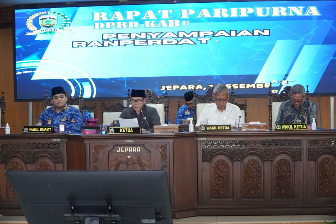 TNews, JEPARA – Dewan Perwakilan Rakyat Daerah (DPRD) Kabupaten Jepara resmi menggelar Rapat Paripurna dengan agenda penyampaian Rancangan Peraturan Daerah (Ranperda) tentang Perubahan atas Perda Nomor 1 Tahun 2024 tentang Pajak Daerah dan Retribusi Daerah. Rapat dipimpin langsung oleh Ketua DPRD Kabupaten Jepara dan berlangsung di Ruang Paripurna.
