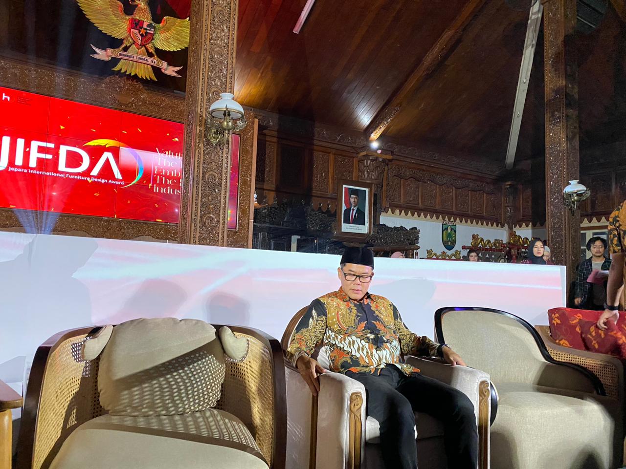 TNews, JEPARA — Semangat kebangkitan industri furnitur Jepara kembali menyala di Pendopo Kabupaten pada Sabtu malam (18/10/2025). Melalui ajang Jepara International Furniture Design Award (JIF-DA) 2025, lahirlah wajah-wajah baru desainer muda yang siap meneruskan kejayaan furnitur Jepara era 80–90an. Ketua DPRD Kabupaten Jepara, Dr. Agus Sutisna, hadir memberi apresiasi langsung dan menegaskan bahwa masa depan kejayaan seni ukir dan furnitur Jepara kini berada di tangan generasi kreatif muda.