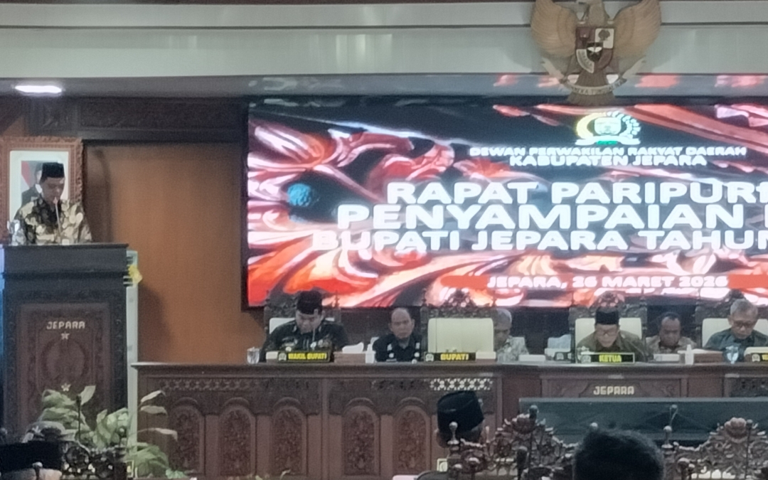 TNews, JEPARA – Bupati Jepara Witiarso Utomo secara resmi menyampaikan Nota Pengantar Laporan Keterangan Pertanggungjawaban (LKPJ) Tahun Anggaran 2025 dalam Rapat Paripurna DPRD Kabupaten Jepara, Maret 2026.