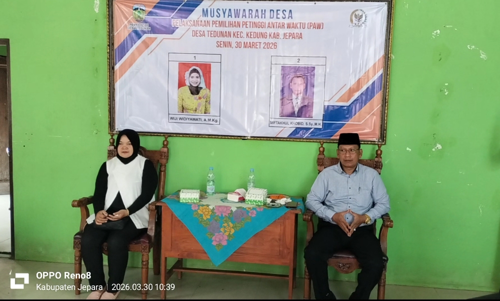 Badan Permusyawaratan Desa (BPD) Desa Tedunan, Kecamatan Kedung, Kabupaten Jepara, sukses menyelenggarakan Pemilihan Petinggi Antar Waktu (PAW) Tahun 2026 yang dilaksanakan di Balai Desa Tedunan, Senin (30/3/2026).