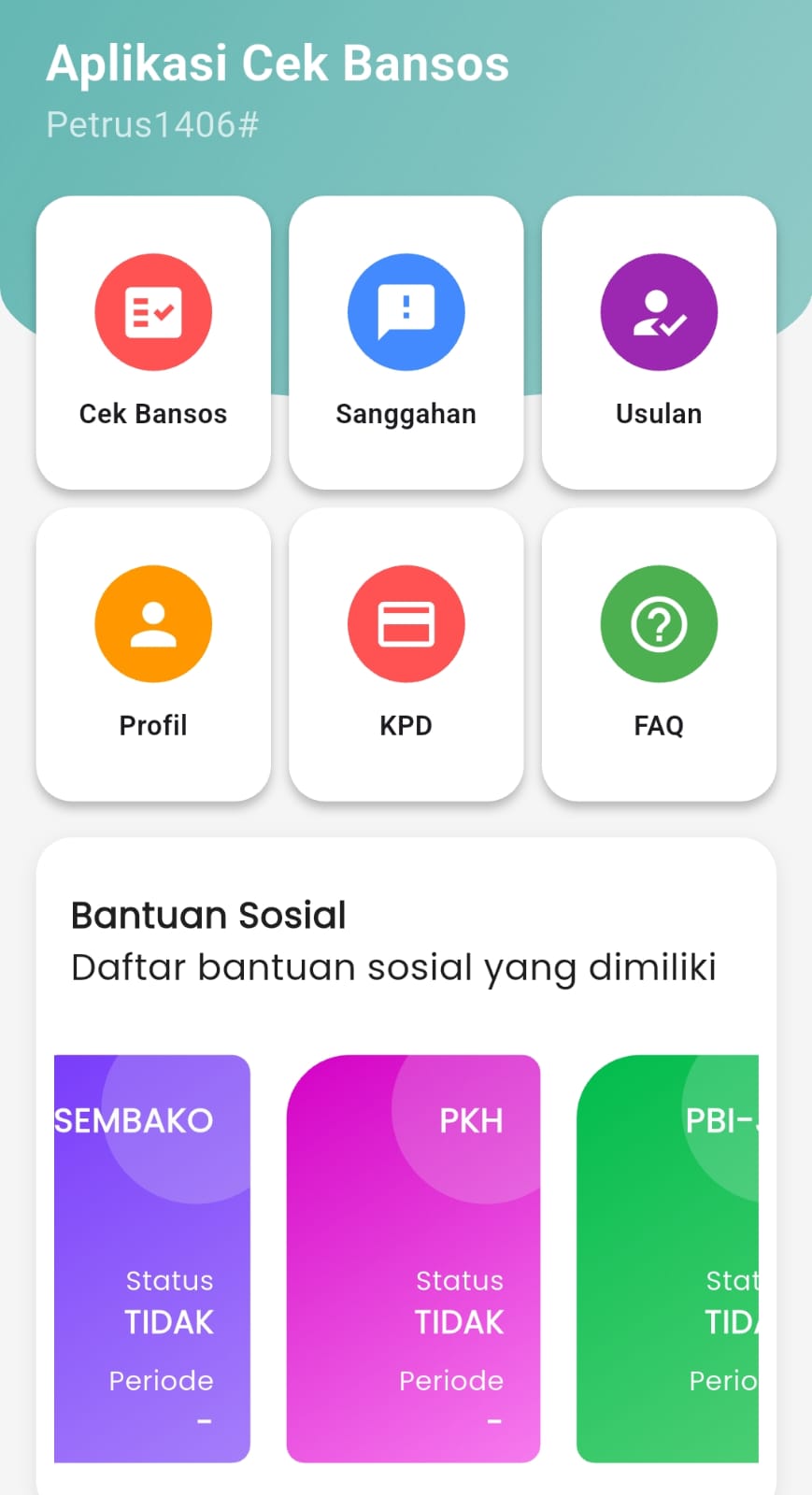 Jika terdaftar, aplikasi akan menampilkan jenis bantuan, periode pencairan, dan status kelayakan.