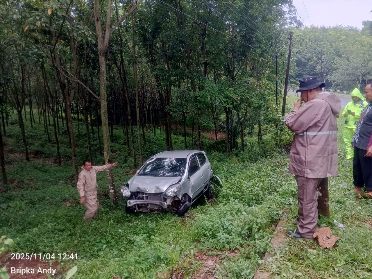 TNews, JEPARA – Kecelakaan tunggal mengerikan terjadi di wilayah Kecamatan Keling, Kabupaten Jepara, Selasa (4/11/2025) siang. Sebuah mobil Daihatsu Ayla warna silver dengan nomor polisi H-1435-WH terjun ke jurang sedalam sekitar empat meter setelah mengalami rem blong di jalan menikung kawasan kebun karet PTPN Balong Beji, Desa Bumiharjo.
