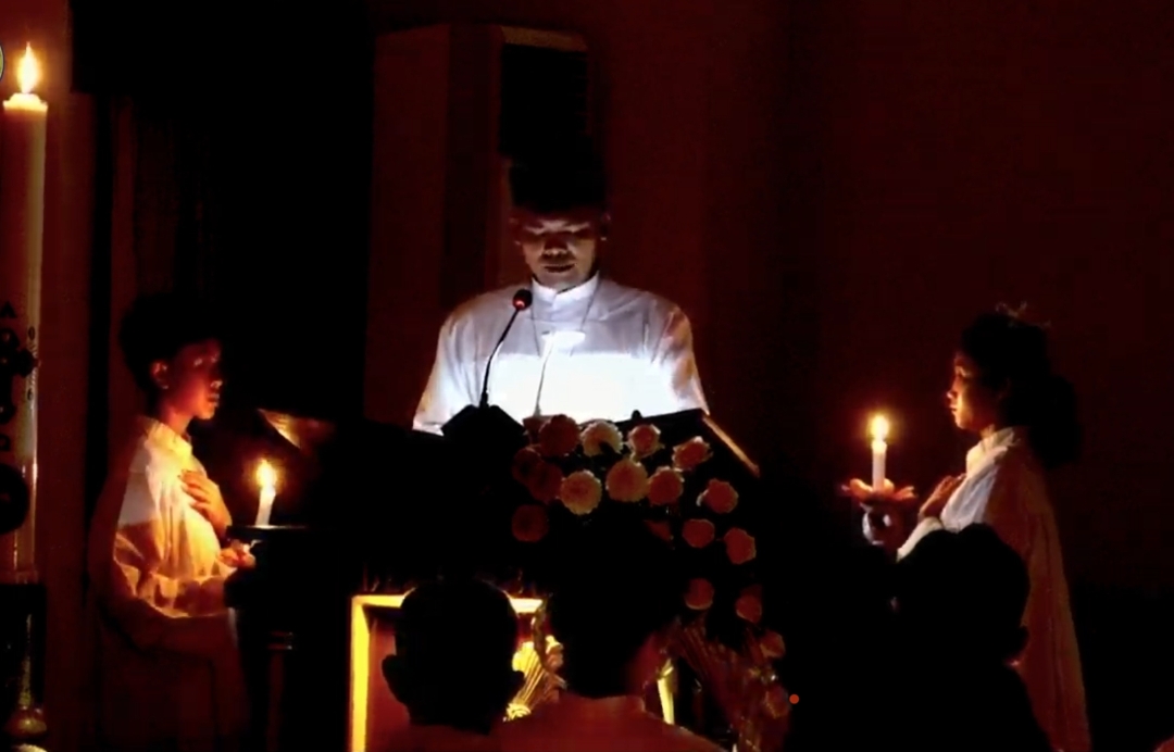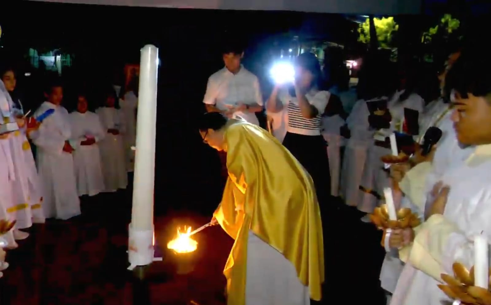 Lilin Paskah dinyalakan, lalu diarak memasuki gereja. Seruan “Cahaya Kristus” menggema tiga kali, disambut umat dengan jawaban penuh iman, “Syukur kepada Allah.” Perlahan, cahaya lilin menyebar dari satu umat ke umat lainnya, mengubah kegelapan